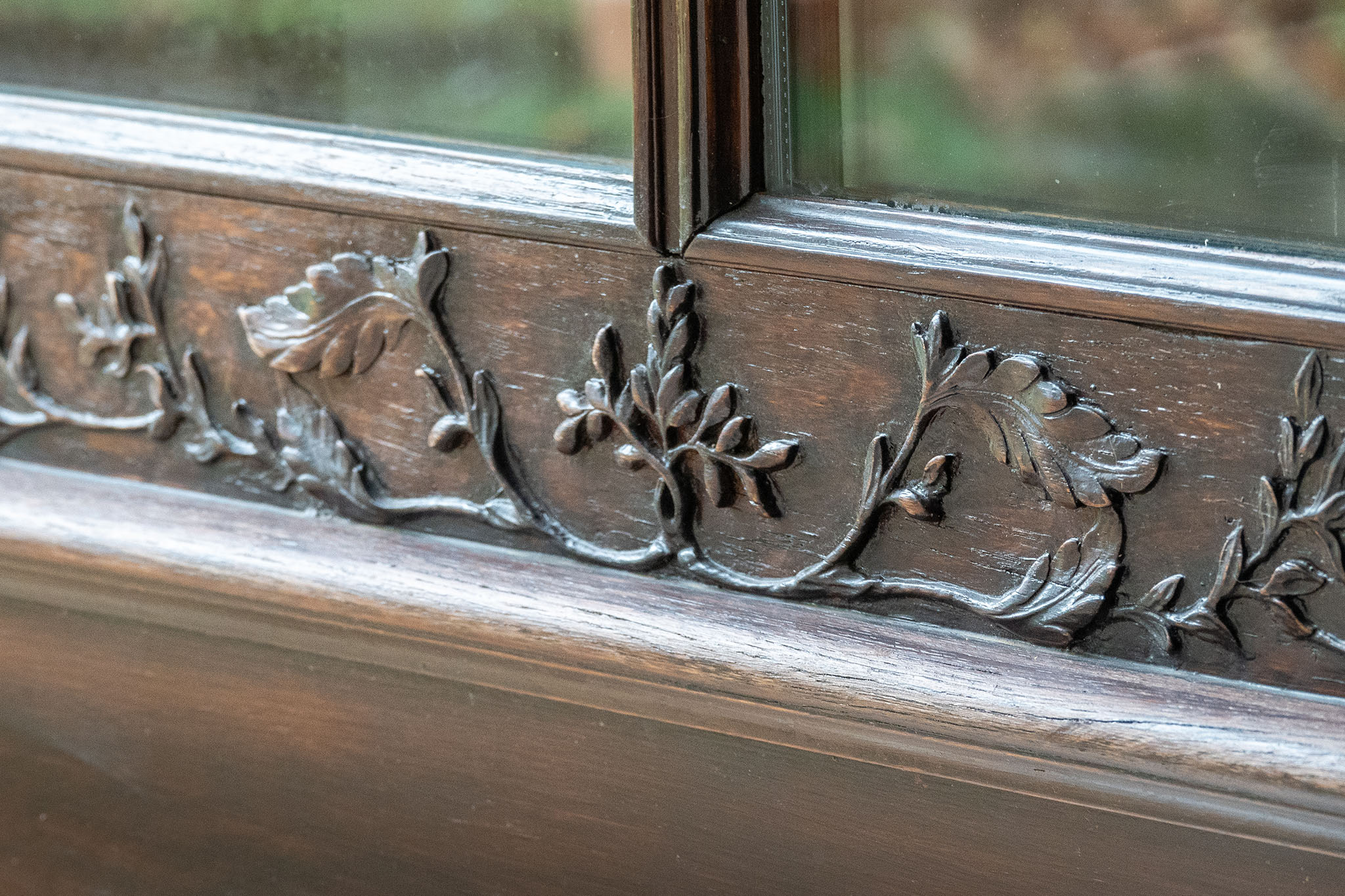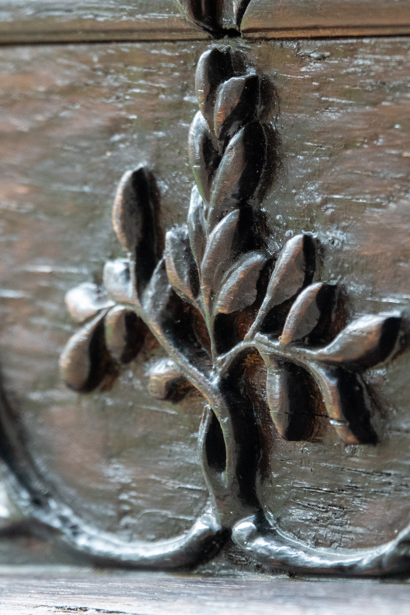 Porte d’entrée chêne avec frise sculptée