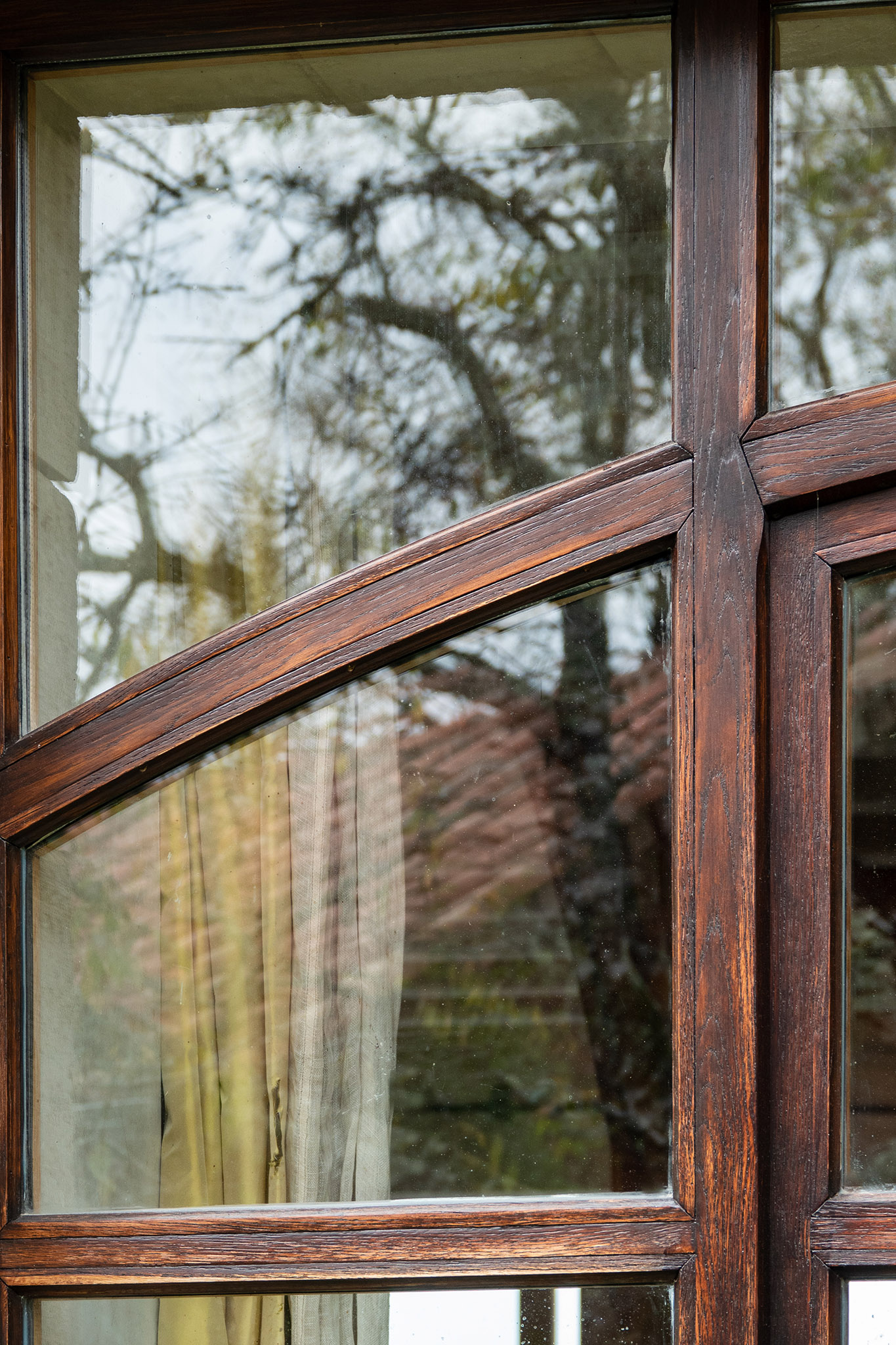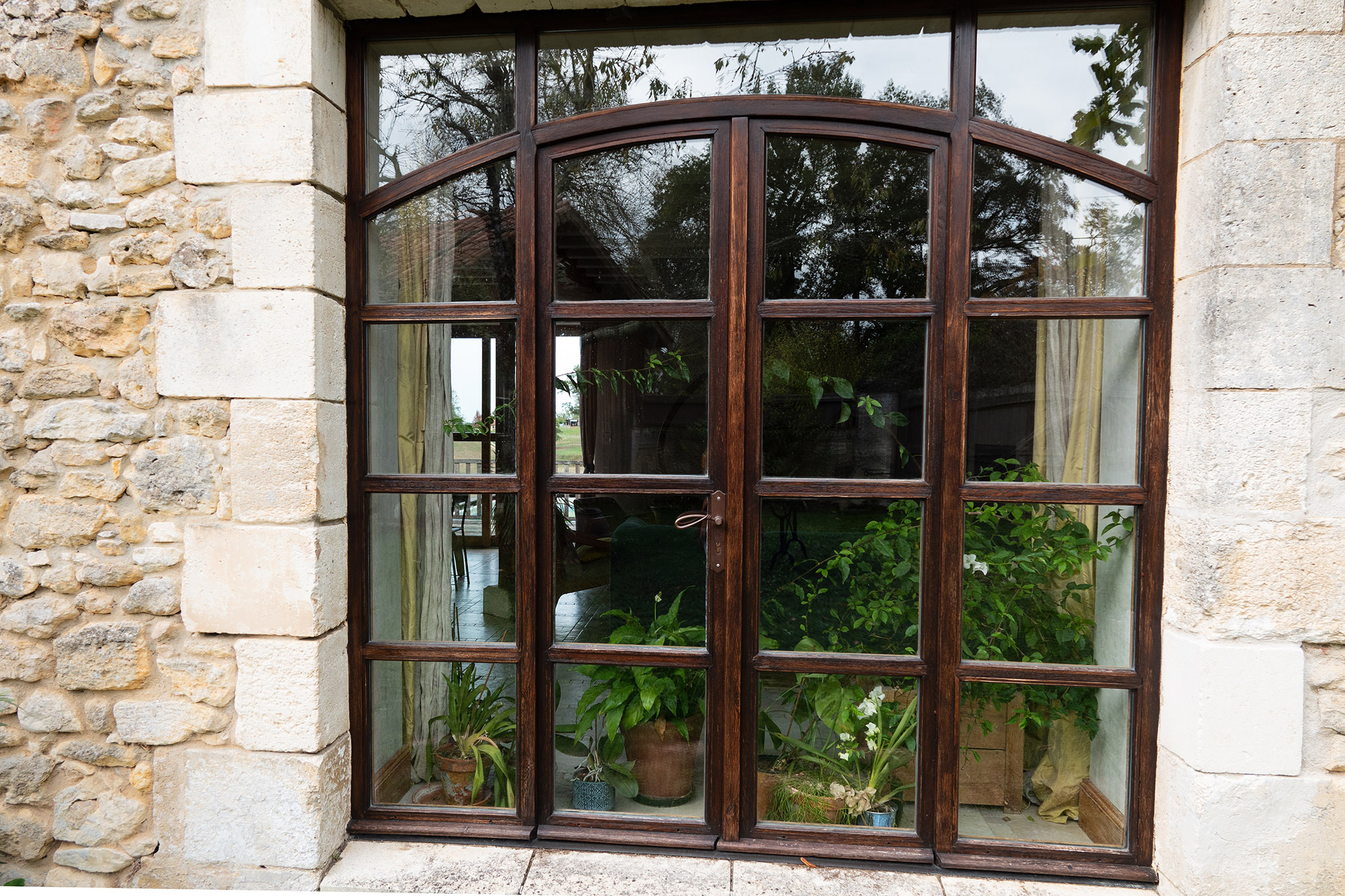 Baie vitrée chêne avec traverse cintrée