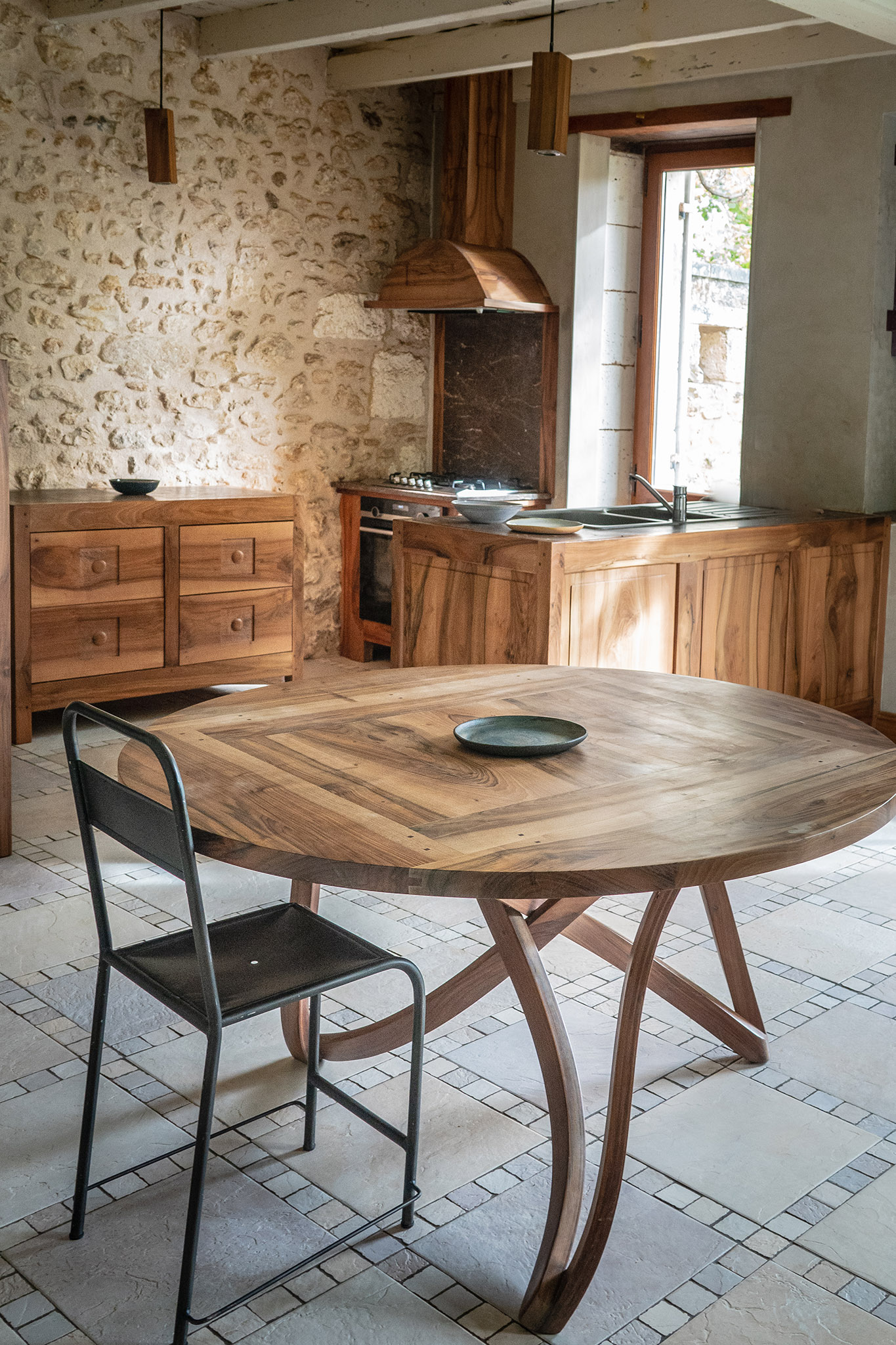 L’aménagement d’une cuisine peut se faire d’une manière classique avec des caissons en panneaux, mais je propose aussi des meubles massifs et indépendants qui pourront évoluer dans l’espace en fonction des envies.