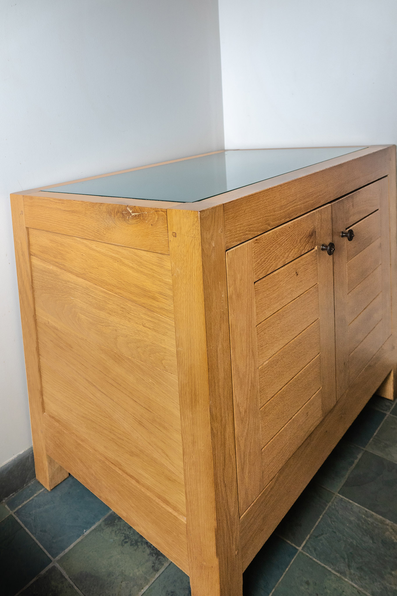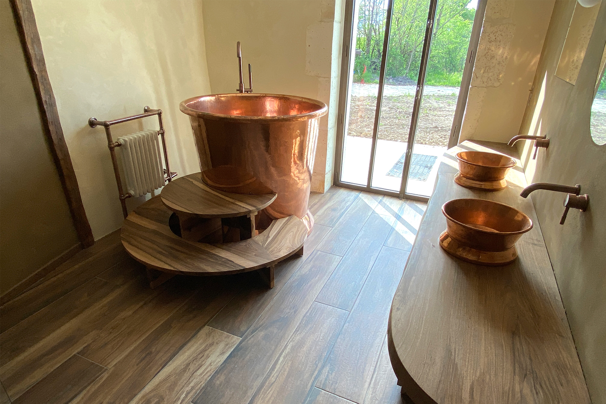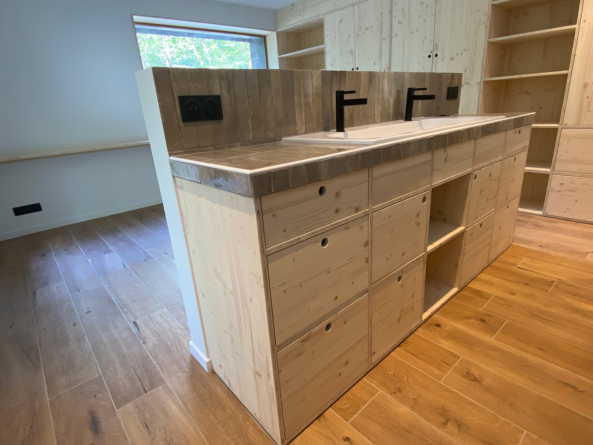 Mes mobiliers de salle de bain sont imaginés en lien avec le client pour habiller l’espace de manière esthétique et fonctionnel.